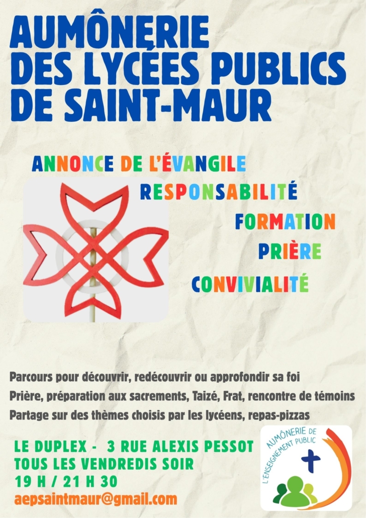 L’aumônerie des lycées publics de Saint-Maur-des-Fossés (AEP) accueille les lycéens du doyenné de Joinville – Saint-Maur.